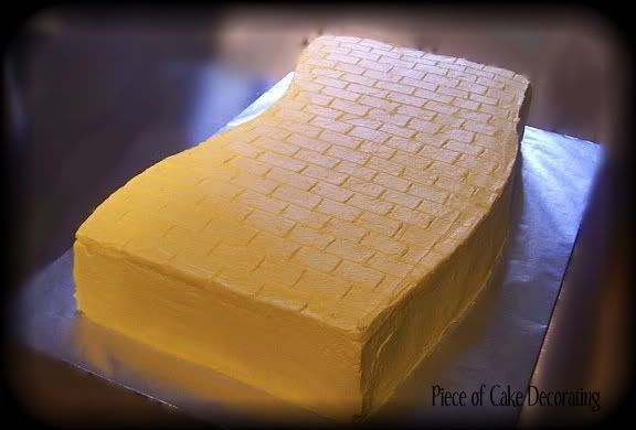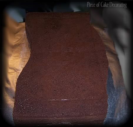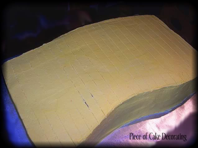 ***Decorator's Tip*** Here I have carved the cake freehand but if you feel a little uneasy about this then you can make a template out of large paper or a 1/2 sheet cake, cardboard divider.